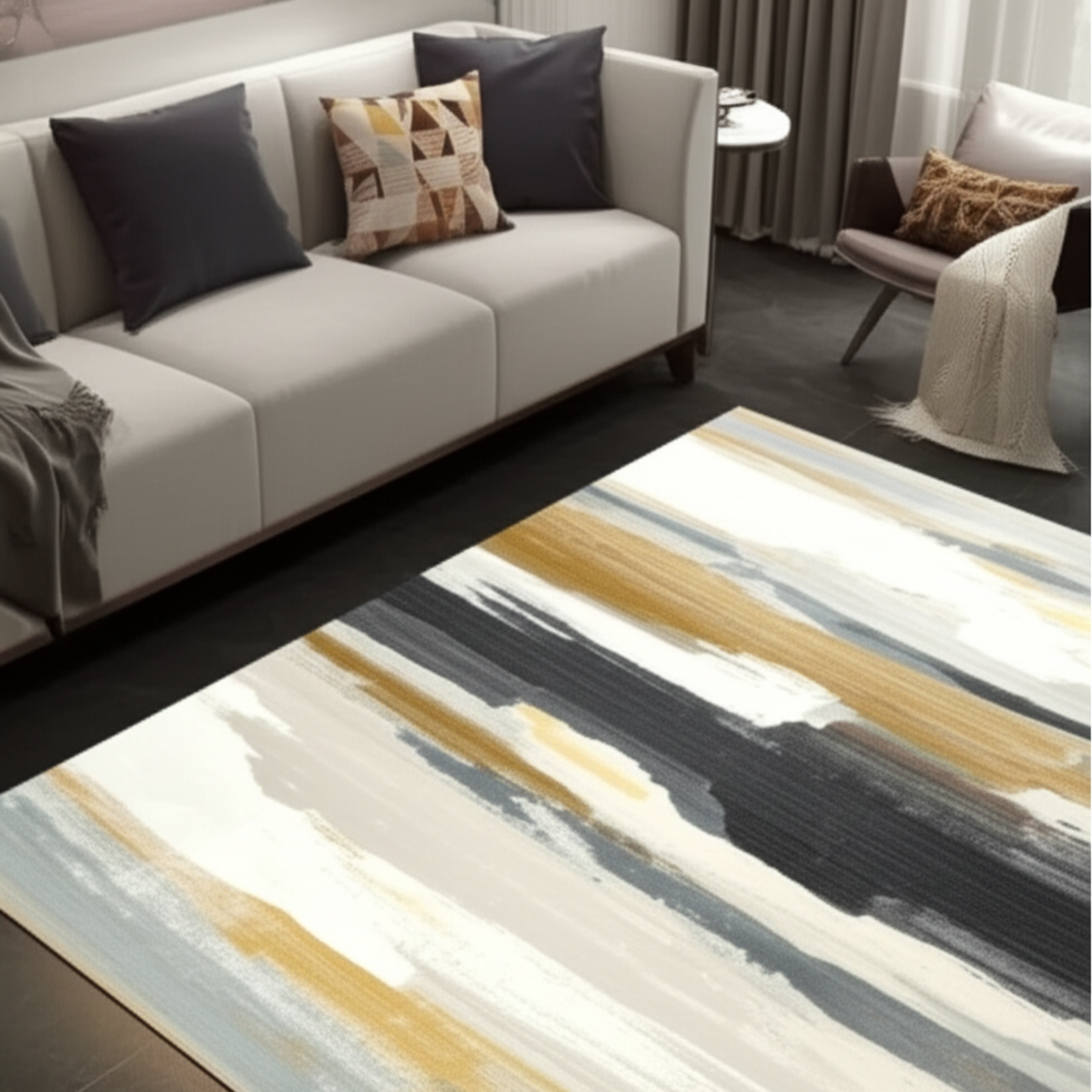 Transform your living space with our exquisite Abstract Brushstrokes Premium Rug. This stunning rug features a modern art design with bold, expressive brushstrokes in a sophisticated color palette of gold, grey, and beige. Perfect for adding a touch of contemporary elegance to any room, this rug will be a conversation starter and a cozy foundation for your home decor. Imagine sinking your feet into the soft, plush surface as you relax in your living room or bedroom. The abstract design blends seamlessly with various interior styles, from minimalist to bohemian, making it a versatile addition to your home. It’s the perfect gift for housewarmings, birthdays, or anyone who appreciates unique and stylish home accents.