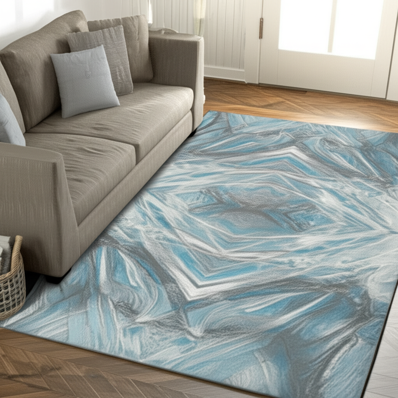 ransform your living space with our stunning Abstract Pattern Premium Rug. This modern area rug features a captivating abstract design in cool blues and grays, adding a touch of contemporary style to any room. Perfect for your living room, bedroom, or office, this rug will be a stylish focal point. Imagine sinking your feet into the soft, comfortable surface of this premium rug after a long day. Its unique pattern complements a variety of decor styles, making it a versatile addition to your home. Give the gift of style and comfort to friends and family. Perfect as a housewarming gift, birthday gift, or a special treat for yourself.