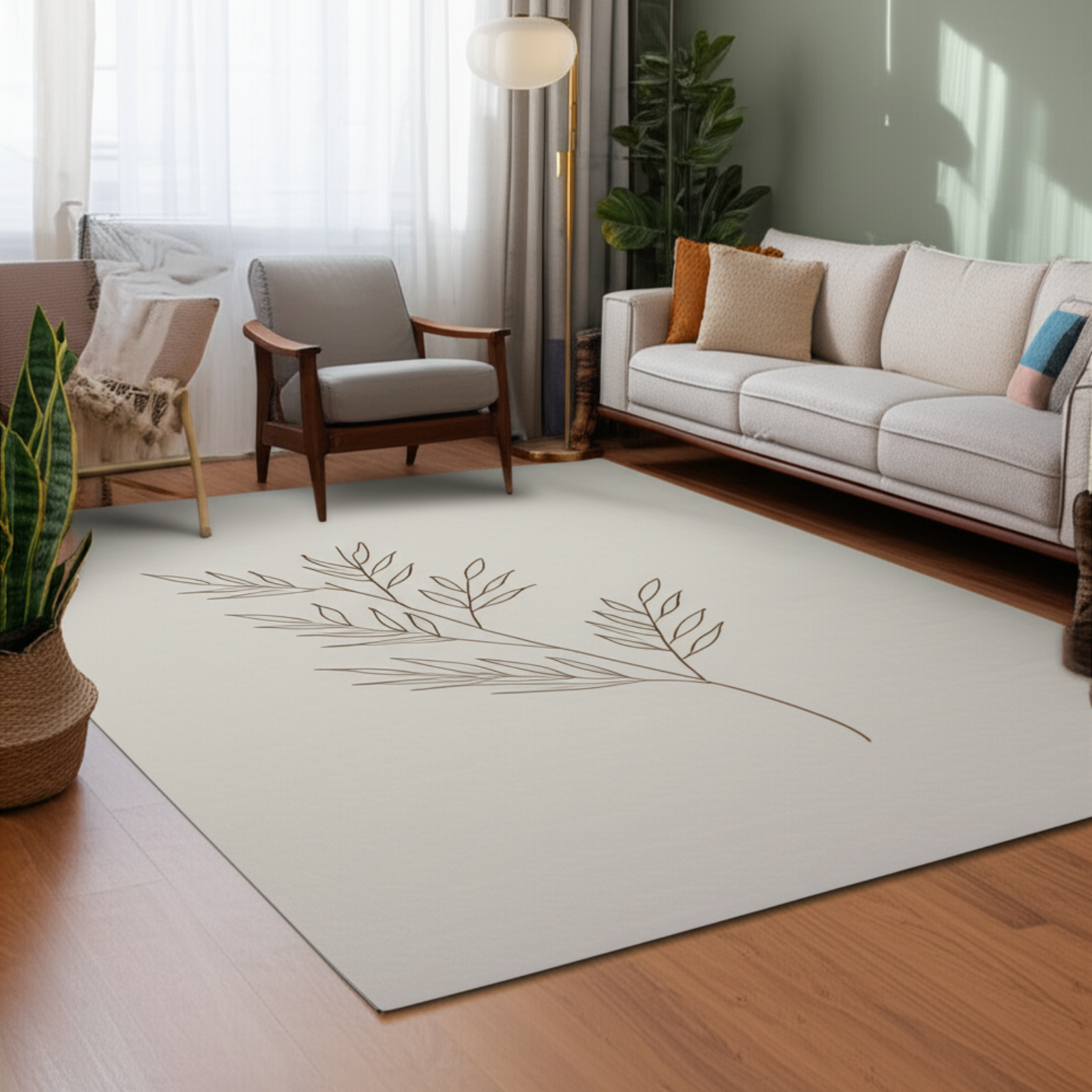 Elevate your living space with this stylish Botanical Print Premium Rug. Featuring a delicate leaf design on a neutral background, this rug adds a touch of minimalist elegance to any room. Perfect for a modern living room, bedroom, or office, its subtle pattern complements a variety of decor styles. Imagine sinking your feet into its soft surface while enjoying a quiet evening at home. This rug is a thoughtful housewarming gift for friends and family who appreciate understated sophistication and modern design.