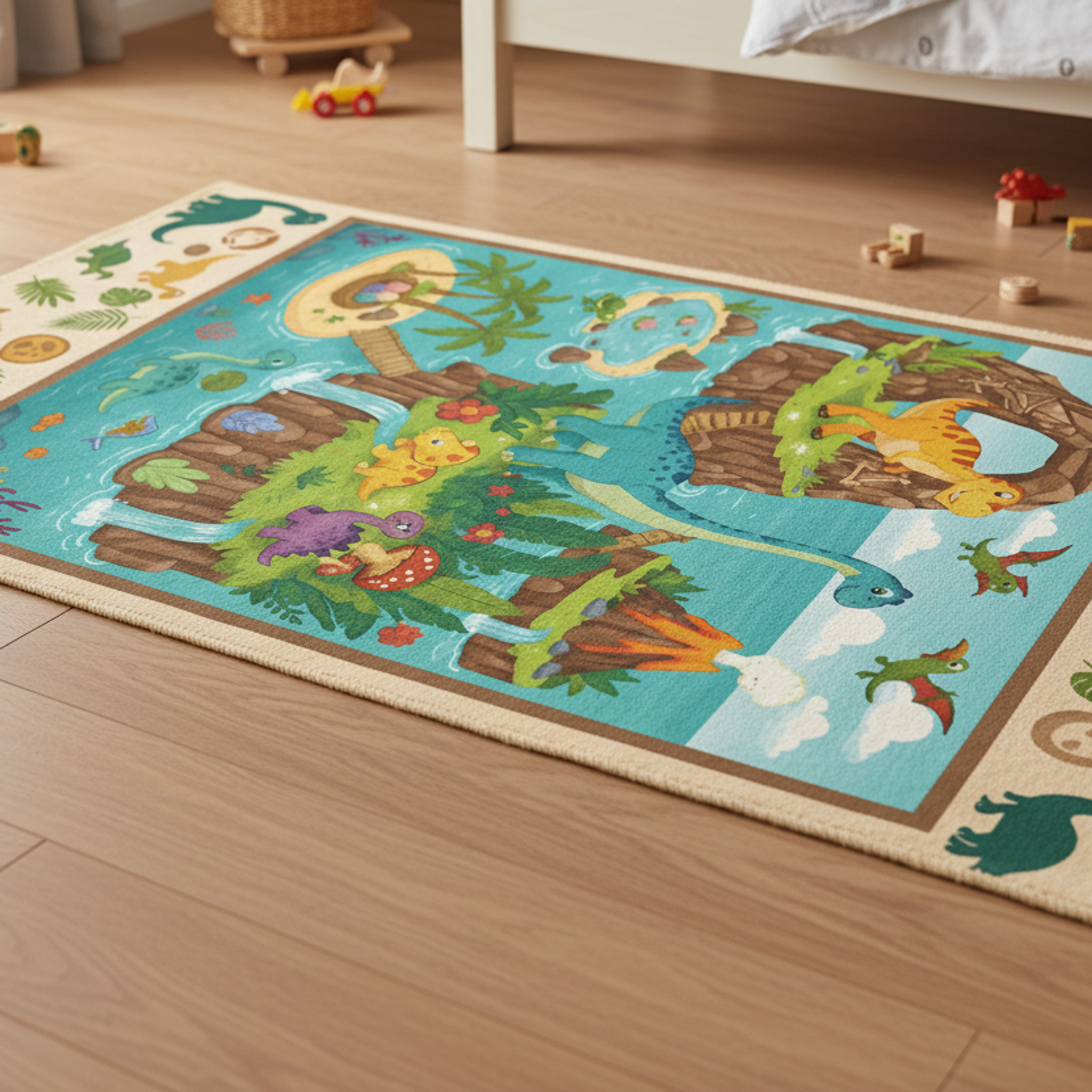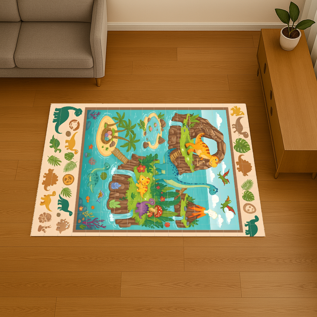 Transform your child's space into a prehistoric paradise with this delightful Dino Island Puffy Rug! Imagine a land where playful dinosaurs roam amidst lush palm trees, sparkling waterfalls cascade down volcanic slopes, and dinosaur eggs nestle in the warm sand. This rug isn't just a floor covering; it's an invitation to adventure and imaginative play. Crafted with eco-conscious fibers, it's soft underfoot and safe for little explorers. Perfect as a unique birthday gift or a fun addition to any kid's room, this Dino Island Puffy Rug will bring a touch of prehistoric charm to your home.