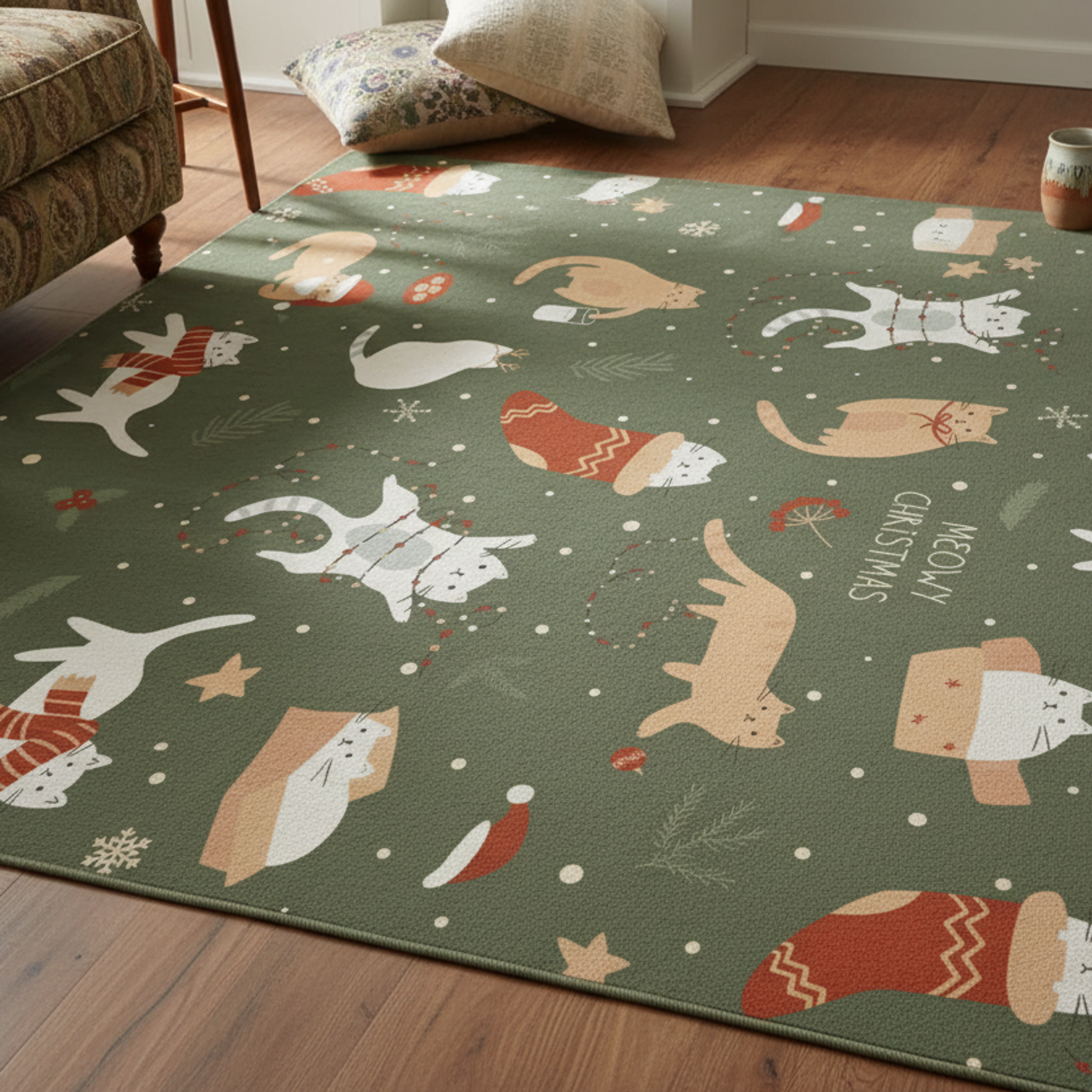 Festive Cat Christmas Rug