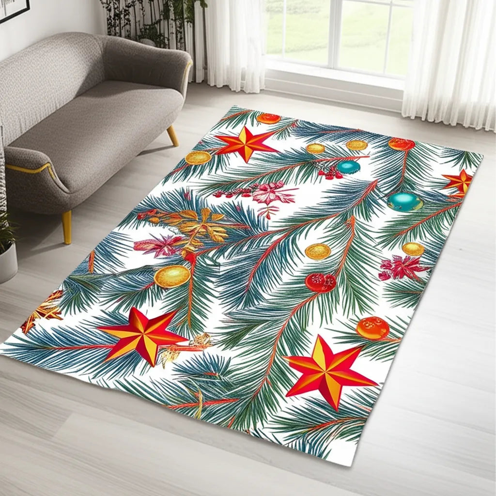 Bring the magic of the holidays home with this festive rug. The design features a pattern of pine branches with colorful ornaments, perfect for adding cheer to any room. The rich colors will create a warm and inviting atmosphere.