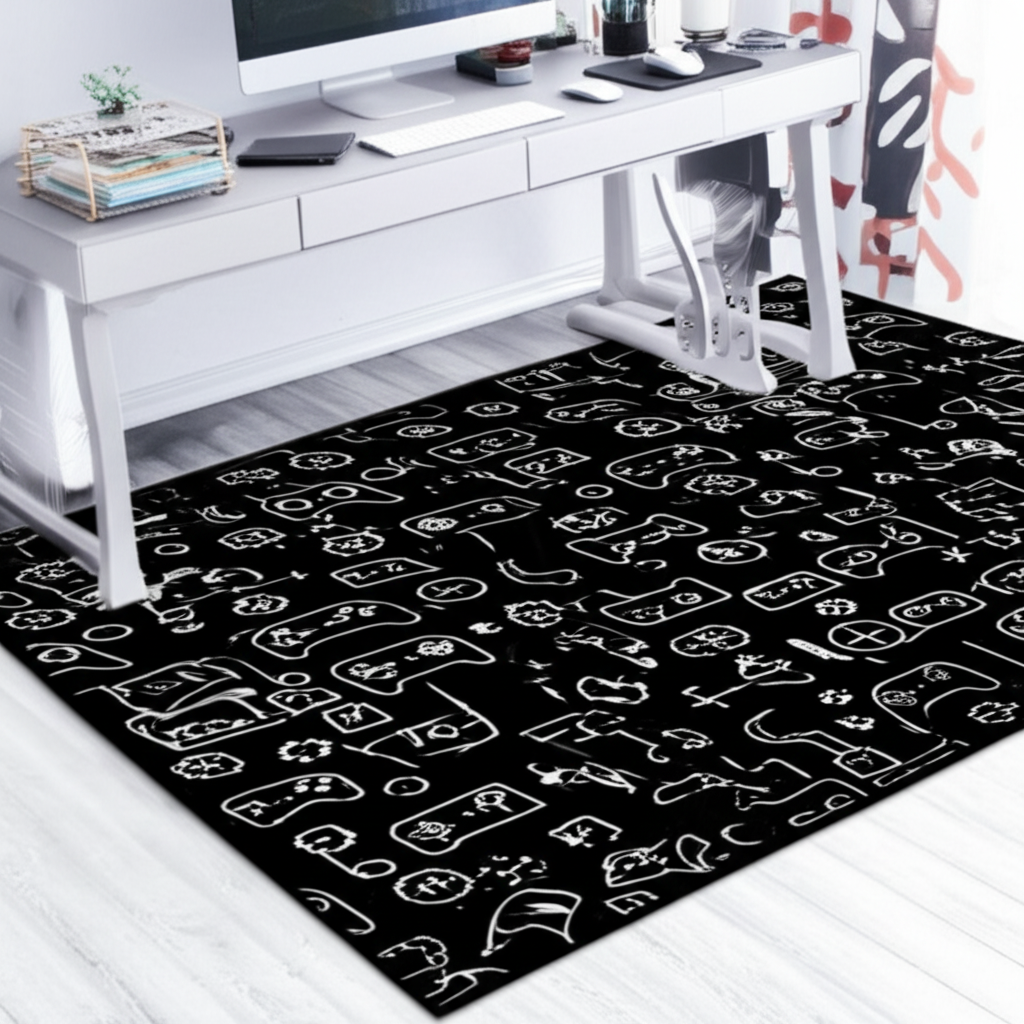 Level up your space with this gamer-themed premium rug! Featuring a playful black and white gamepad pattern, this rug adds a fun, modern touch to any room. Perfect for a kids' room, playroom, or even a gaming-themed living room, it's a stylish way to show off your love for video games. Imagine this rug in a teen's bedroom or dorm room, bringing personality and comfort to their space. It's the perfect gift for the gamer in your life.