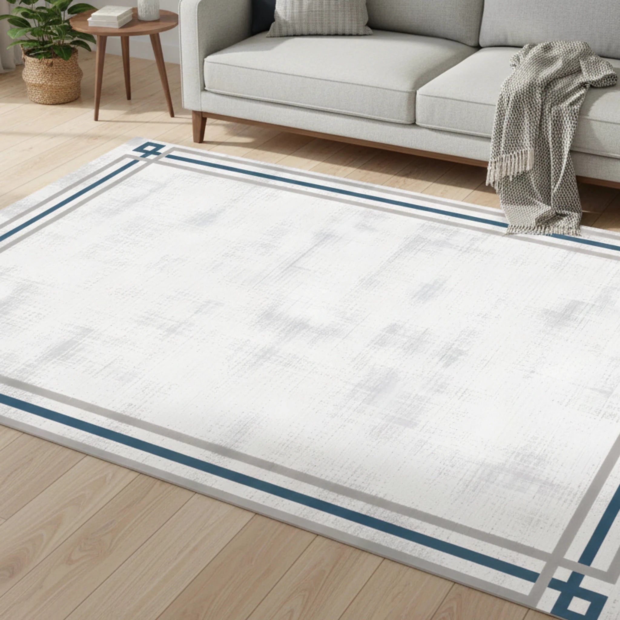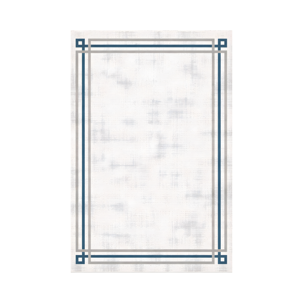 Enhance your living space with this geometric border rug, perfect for adding a touch of clean, simple design. This Eco Rug features a rectangular frame motif and double line border, ideal for any living room.