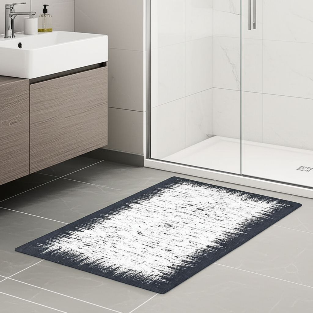 Add a touch of modern elegance to your bathroom with this stylish brushstroke bathroom mat. The simple black and white design complements any bathroom decor, while the soft, absorbent material feels great under your feet. This mat is perfect for adding a touch of comfort and style to your daily routine. Imagine stepping out of the shower onto this cozy mat, starting your day with a little luxury. This bathroom mat isn't just stylish, it's also practical. The non-slip base keeps it securely in place, preventing slips and falls. It's also easy to care for, so you can keep it looking fresh and clean with minimal effort. Makes a thoughtful housewarming gift for someone who appreciates modern design and quality craftsmanship.