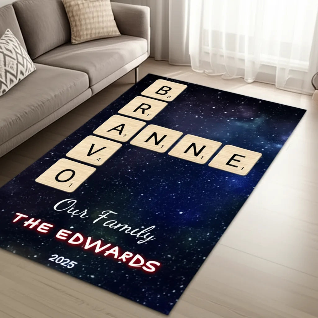 🧩 Personalized Crossword Rug – Scrabble Style Design