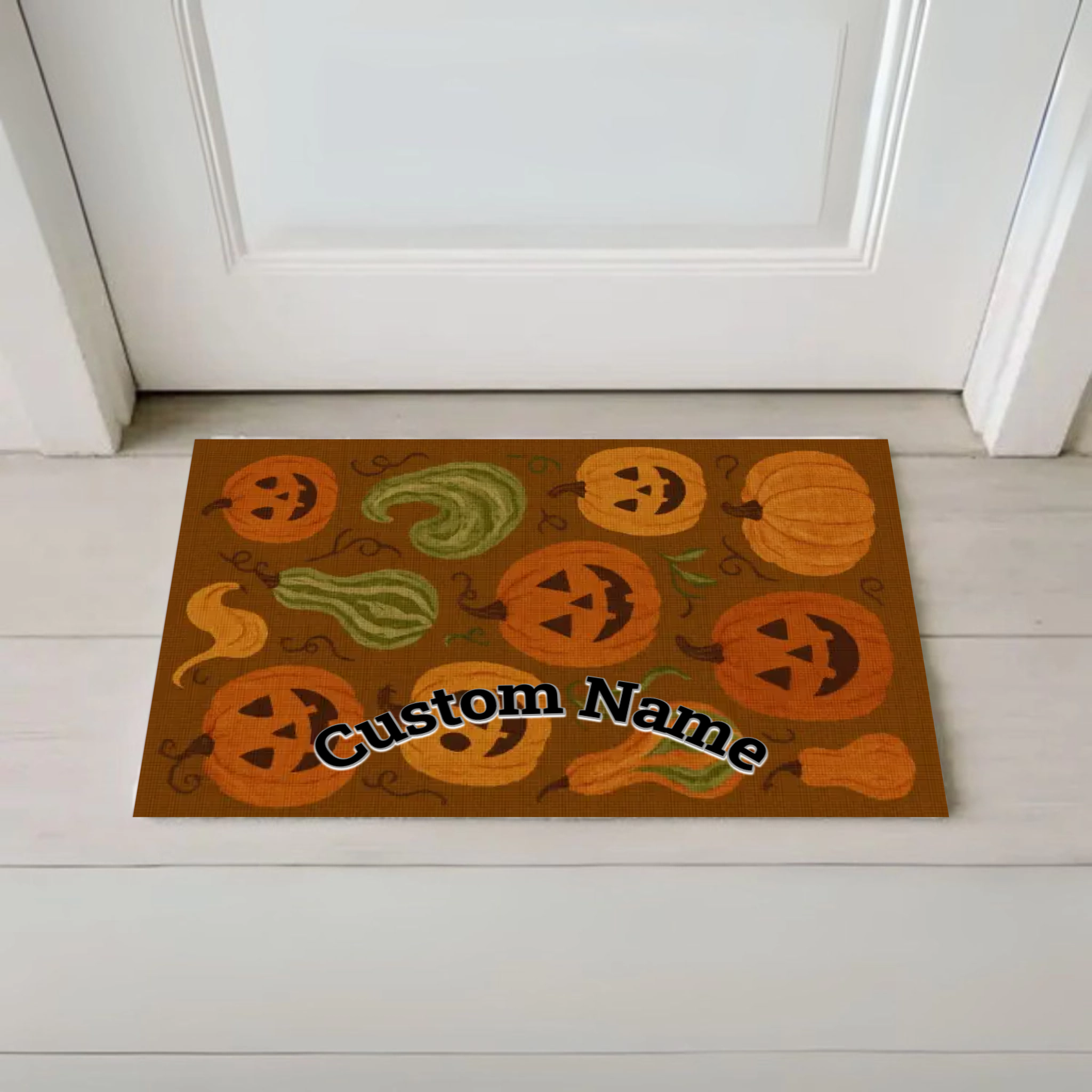 Bring the Halloween spirit right to your doorstep! This customizable Halloween doormat not only welcomes your guests with a festive touch but also adds a unique charm to your holiday décor. Personalize it with your family name, a spooky phrase, or a fun greeting – the choice is yours!