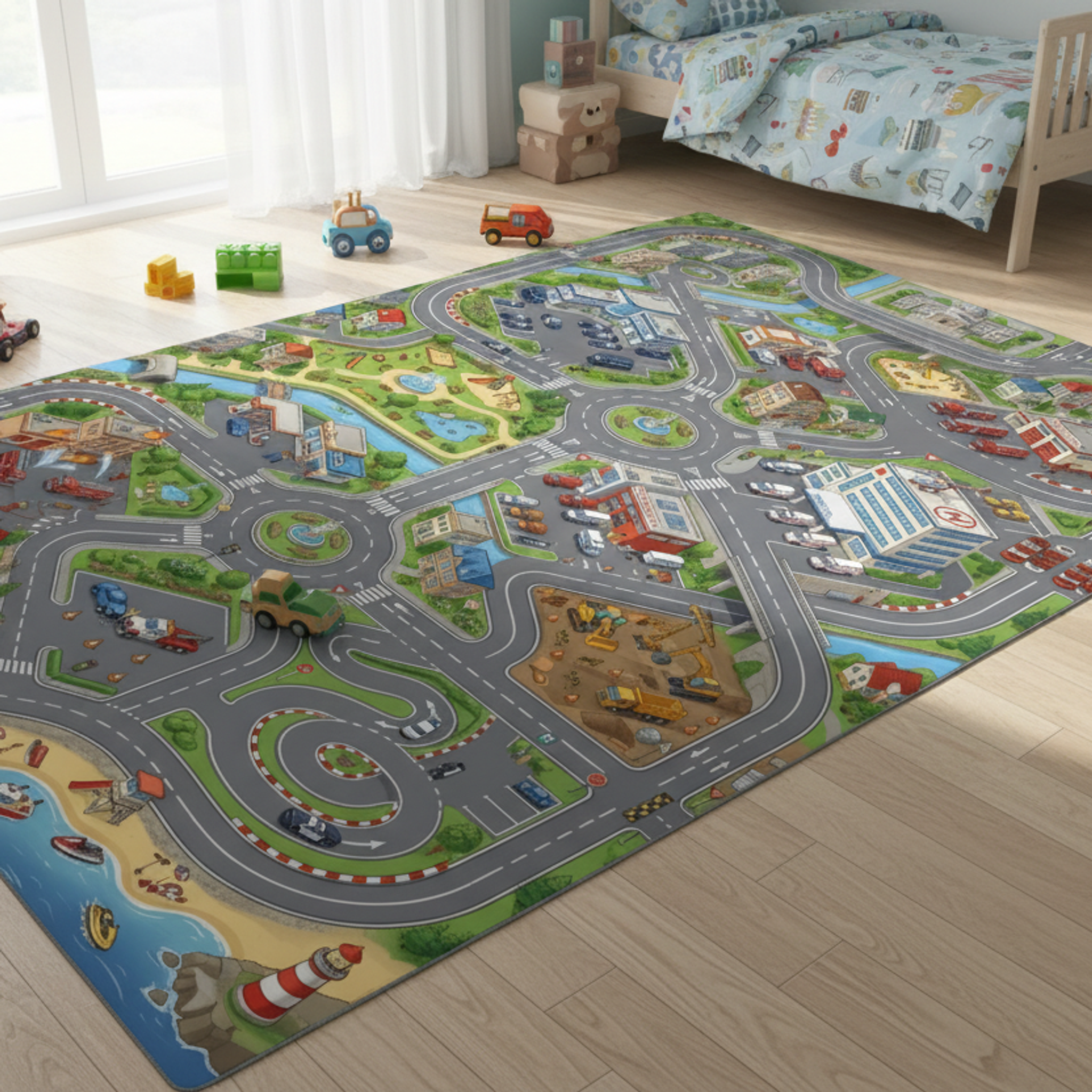 I've designed this rug to be soft underfoot and durable, perfect for kids to play on. The non-slip base ensures it stays in place, even during the most imaginative adventures. It's the ideal gift for birthdays, holidays, or just because! Give the gift of cozy comfort and urban exploration.