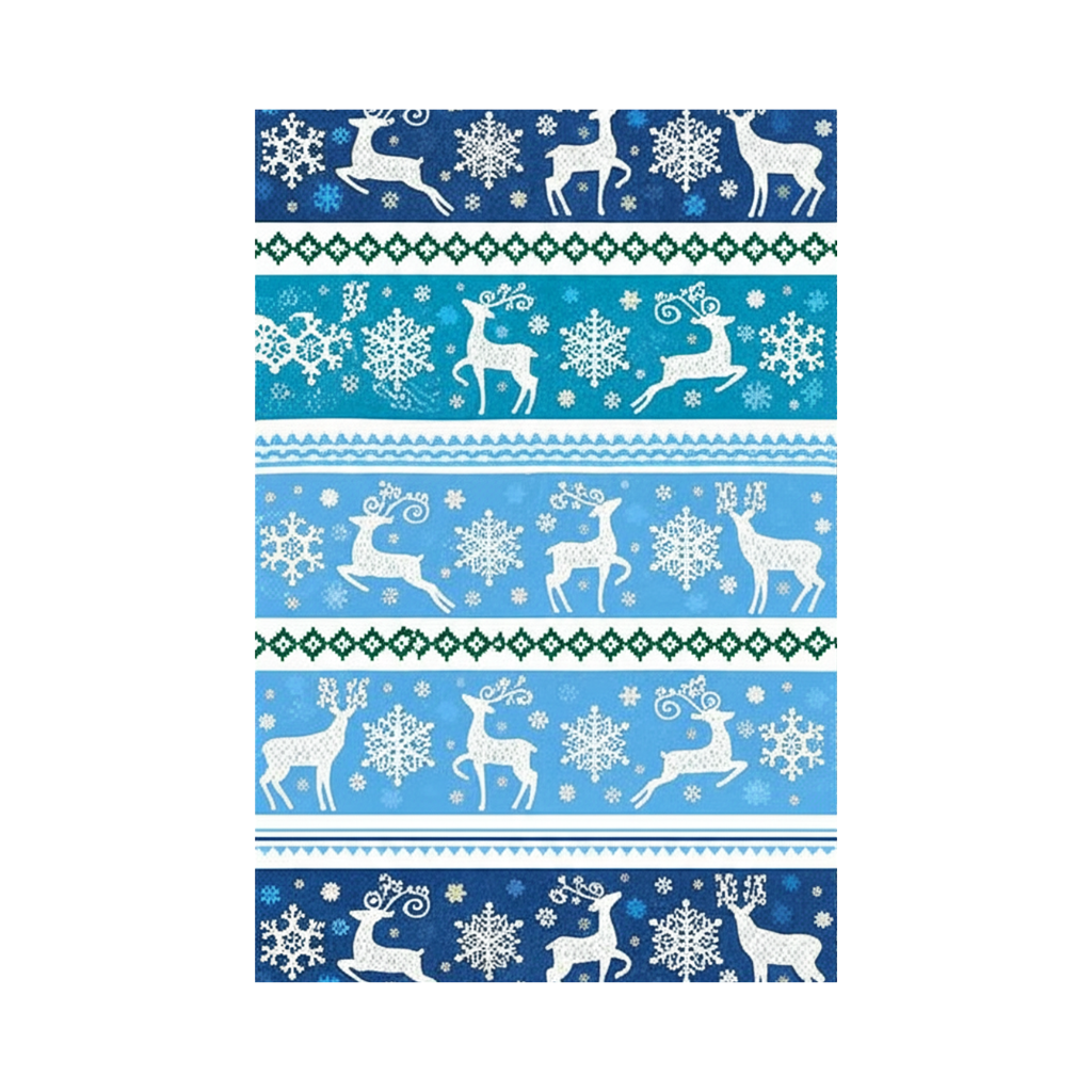 This rug features a festive pattern of deer and snowflakes in shades of blue and white. The design creates a cozy and inviting feel, perfect for adding a touch of winter charm to any room. This rug will be a delightful addition to your home during the holiday season.